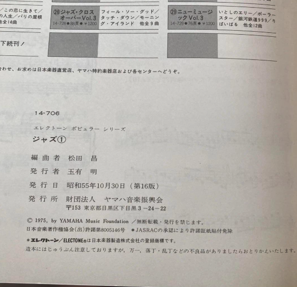 (USED) JAZZ 1 Electone Popular Series 6 [Published:1975]